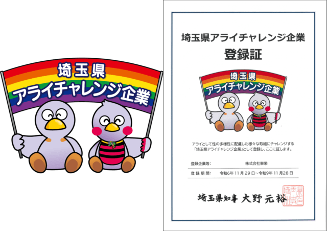 株式会社東栄は令和6年11月29日付で「埼玉県アライチャレンジ企業」に登録。※埼玉県ホームページ:「埼玉県アライチャレンジ企業登録制度」