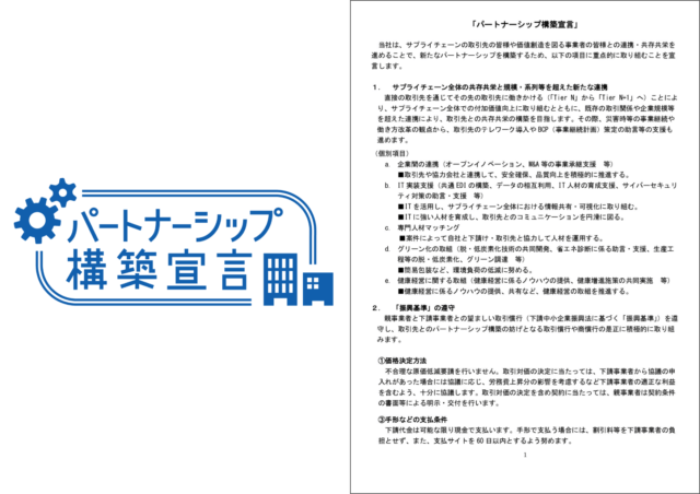 取引先の皆様との連携・共存共栄を進めるべく「パートナーシップ構築宣言」を公表。