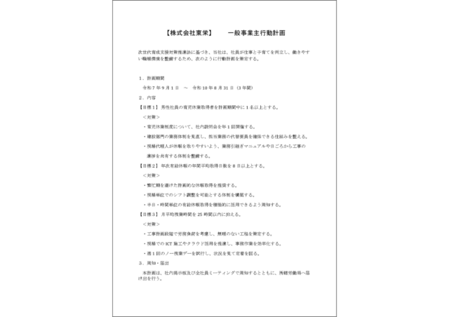 社員が仕事と子育てを両立し働きやすい職場環境を整備するため、次世代育成支援対策推進法に基づき、「一般事業主行動計画」を公表します。※次世代育成支援対策推進法とは