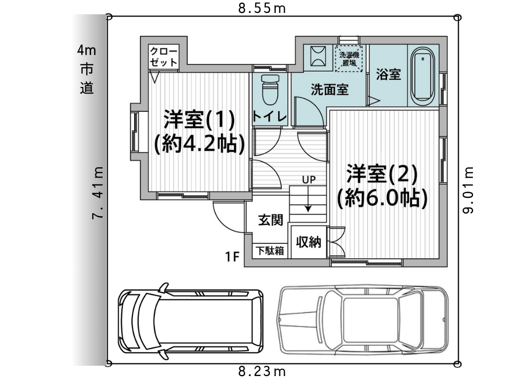 | 接道 | 北西約4mの市道 |
