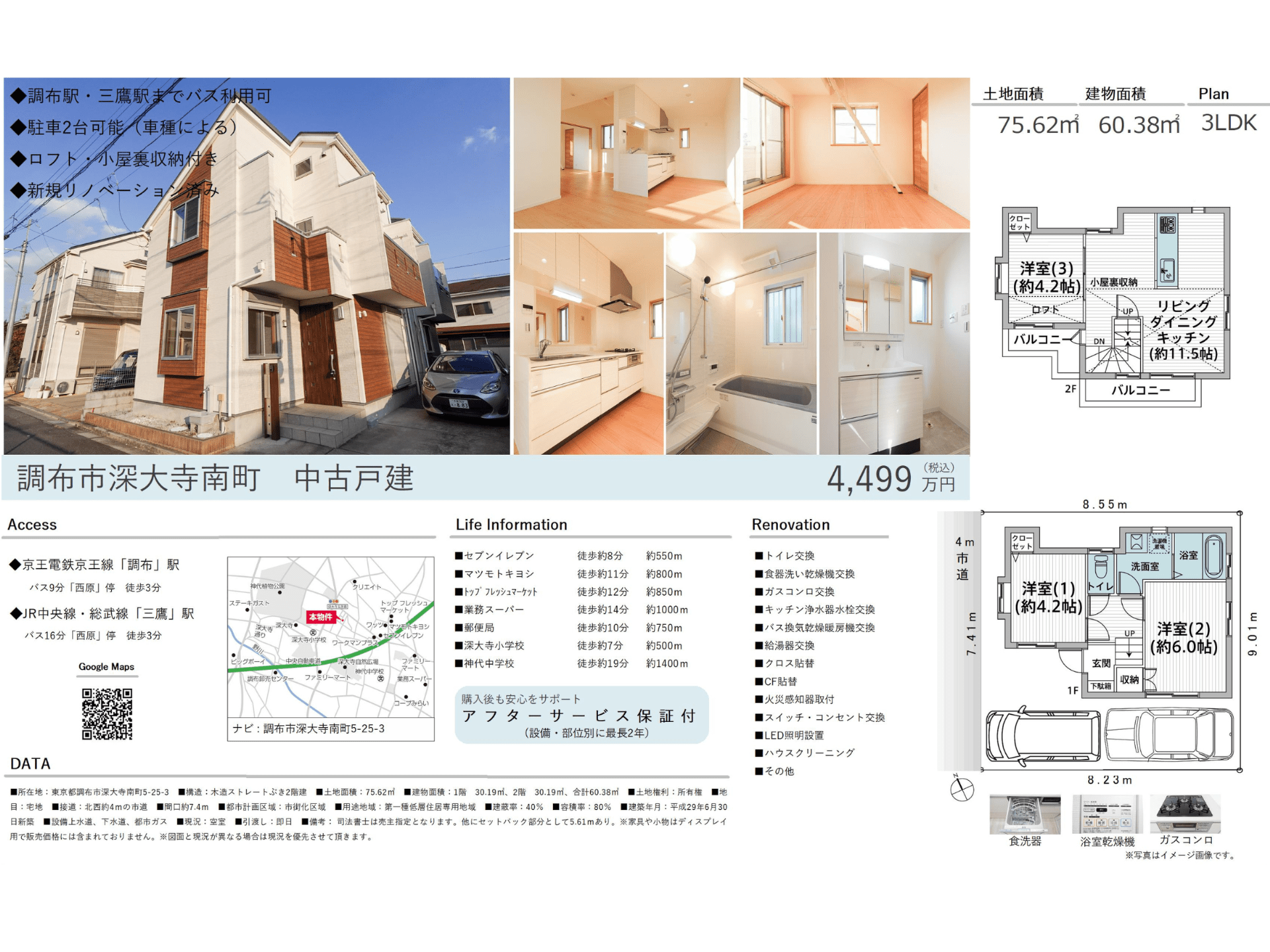 〇調布駅・三鷹駅までバス利用可 〇駐車2台可能(車種による) 〇ロフト・小屋裏収納付き 〇新規リノベーション済み