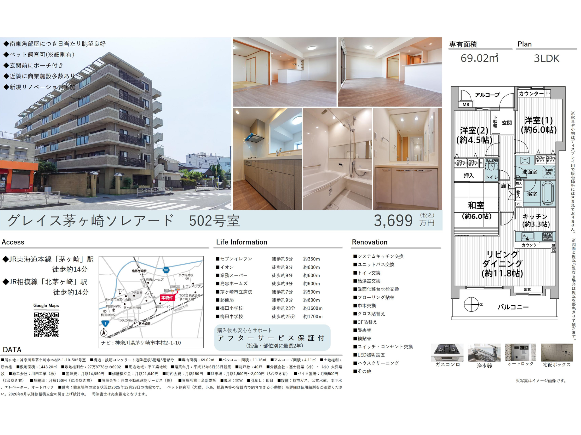 | 交通 | ◆JR東海道本線「茅ヶ崎」駅 徒歩約14分 ◆JR相模線「北茅ヶ崎」駅 徒歩約14分 |