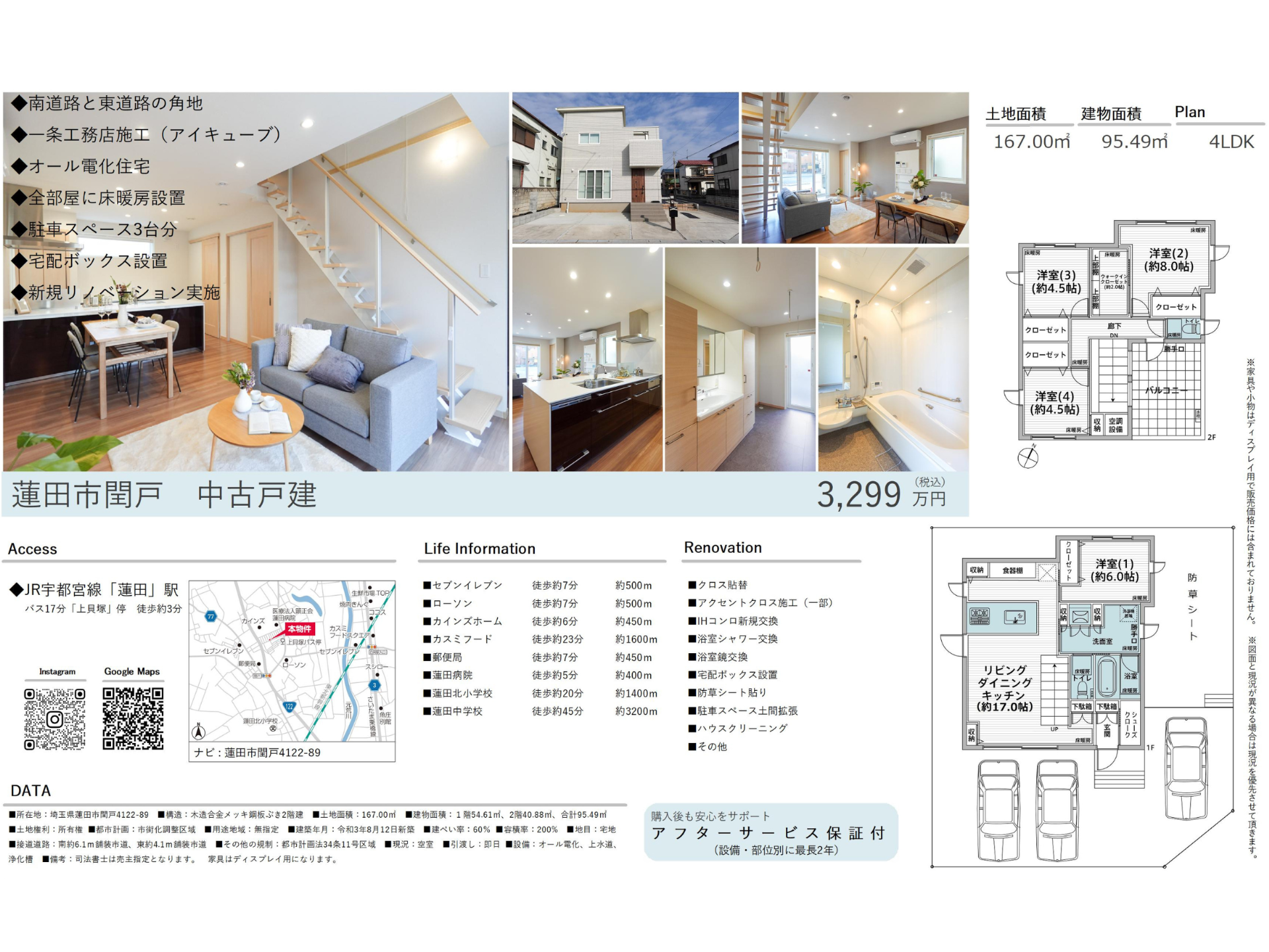 〇南道路の角地 〇一条工務店施工 〇オール電化住宅 〇駐車スペース3台分 〇宅配ボックス設置 〇新規リノベーション