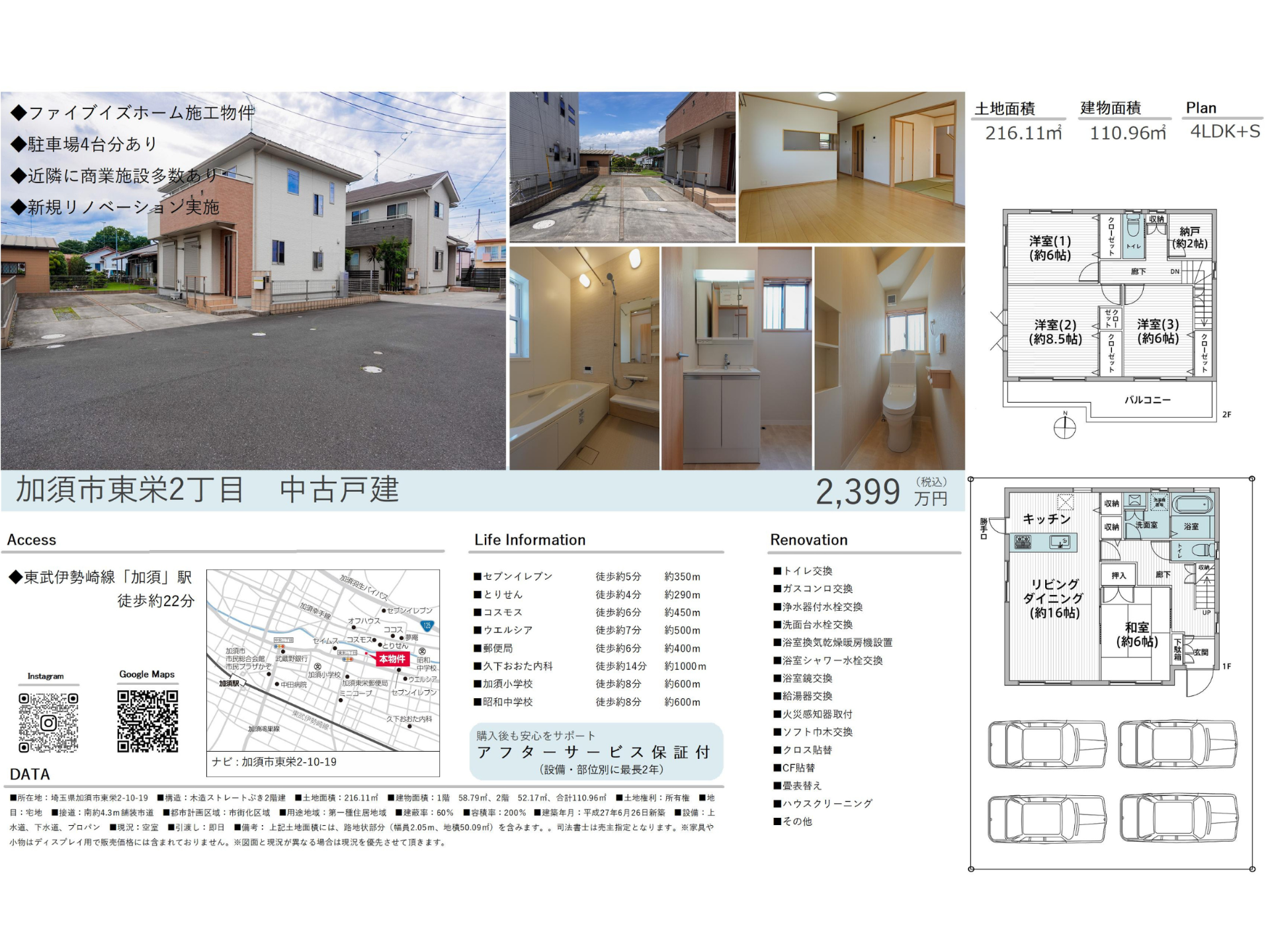 〇ファイブイズホーム施工物件 〇駐車場4台分あり 〇近隣に商業施設多数あり 〇新規リノベーション