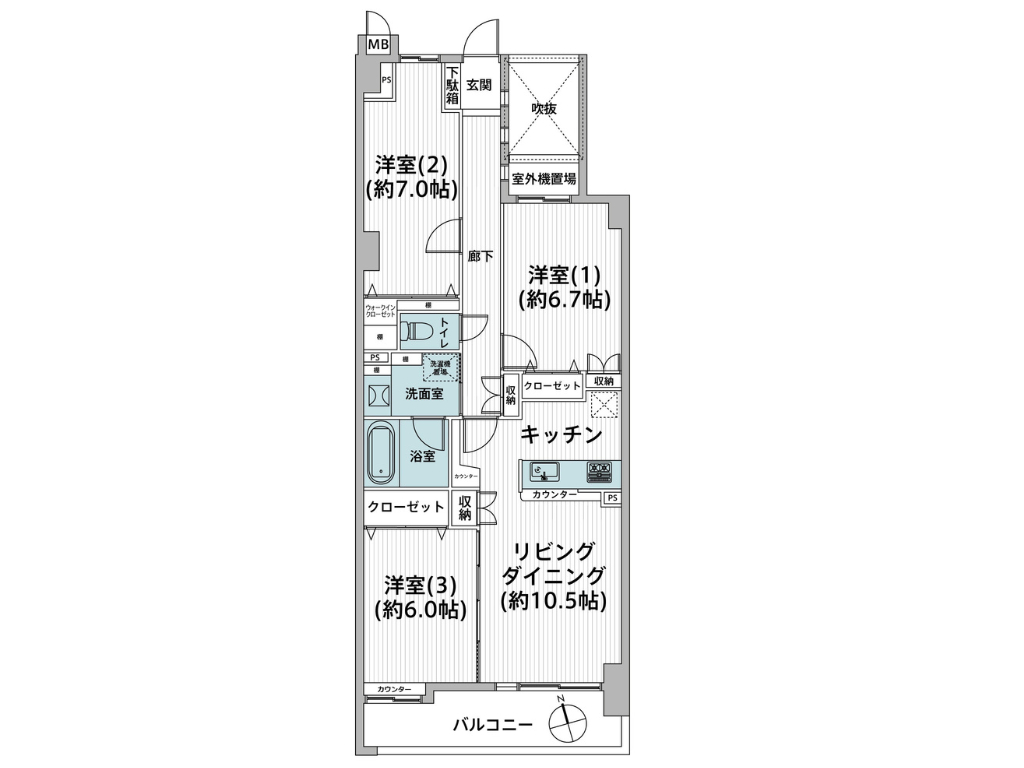 | 面積 | 専有面積:76.56㎡ バルコニー面積:9.00㎡ |