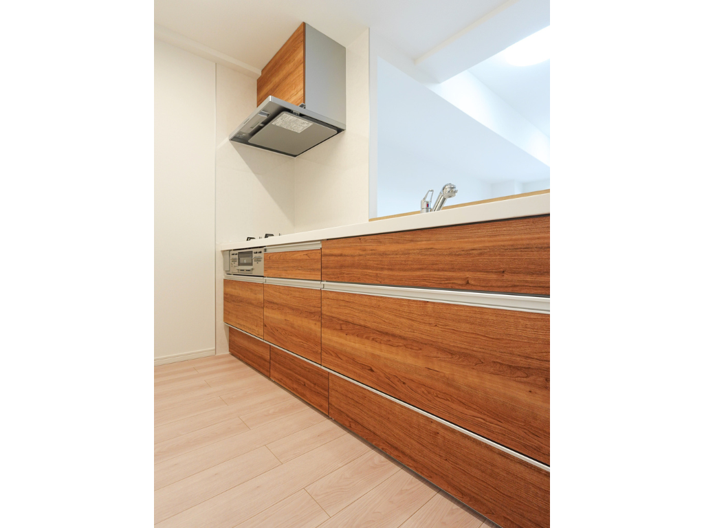 システムキッチン交換、ユニットバス交換、洗面化粧台交換、トイレ交換、給湯器交換、建具交換、玄関ドア交換(鍵新品交換2026年3月)、フローリング貼替、巾木交換、クロス貼替、CF貼替、モニター付きインターホン交換、分電盤交換、スイッチ・コンセント交換、全室LED照明設置、ハウスクリーニング、その他