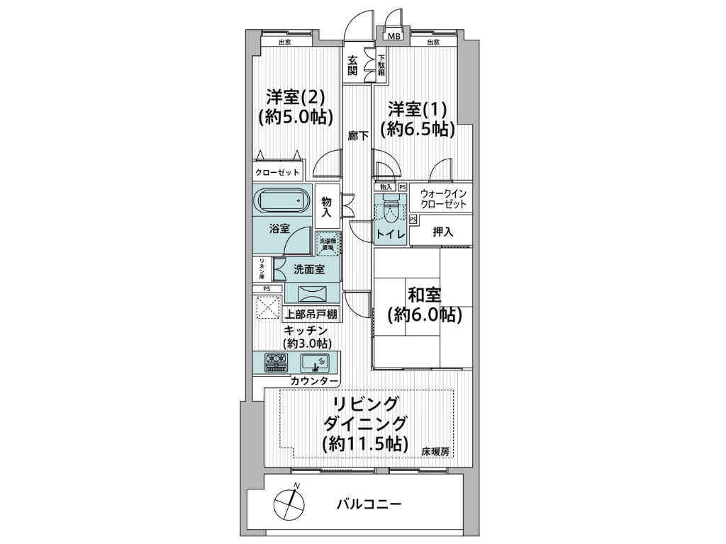 | 面積 | 専有面積:72.45㎡ バルコニー面積:11.09㎡ |